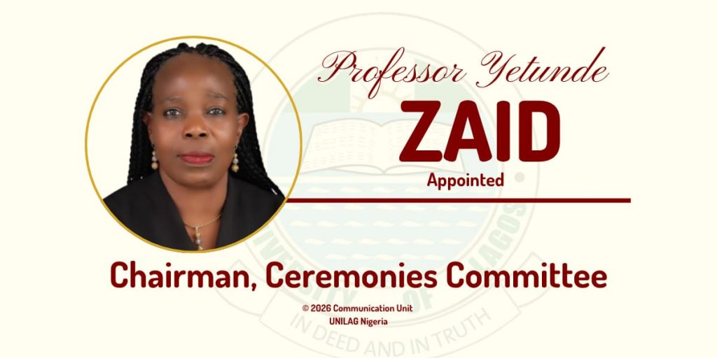 The immediate-past University of Lagos (UNILAG) Librarian, Prof. Yetunde Zaid has been appointed as Chairman of the University’s Ceremonies Committee. Her appointment is with effect from Thursday, April 2, 2026 to Sunday, January 31, 2027.