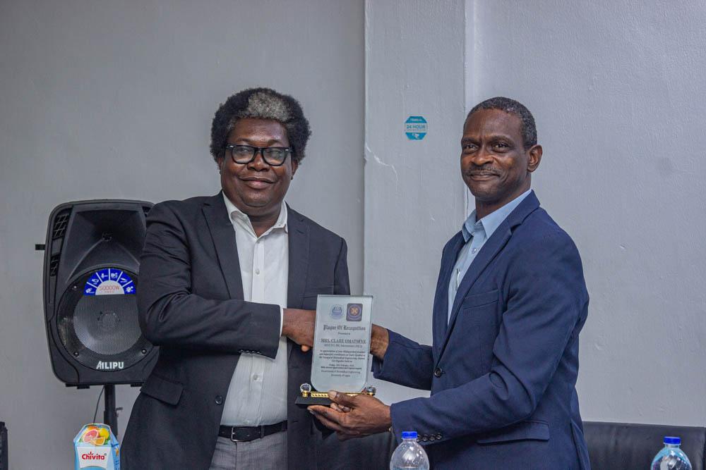 One of the most moving moments of the day came with the formal honouring of Professor Adegbenro for his pioneering role in establishing Biomedical Engineering at UNILAG. Amid a standing ovation, Prof. Oluseyi presented the award, recounting his foundational contributions to the discipline.