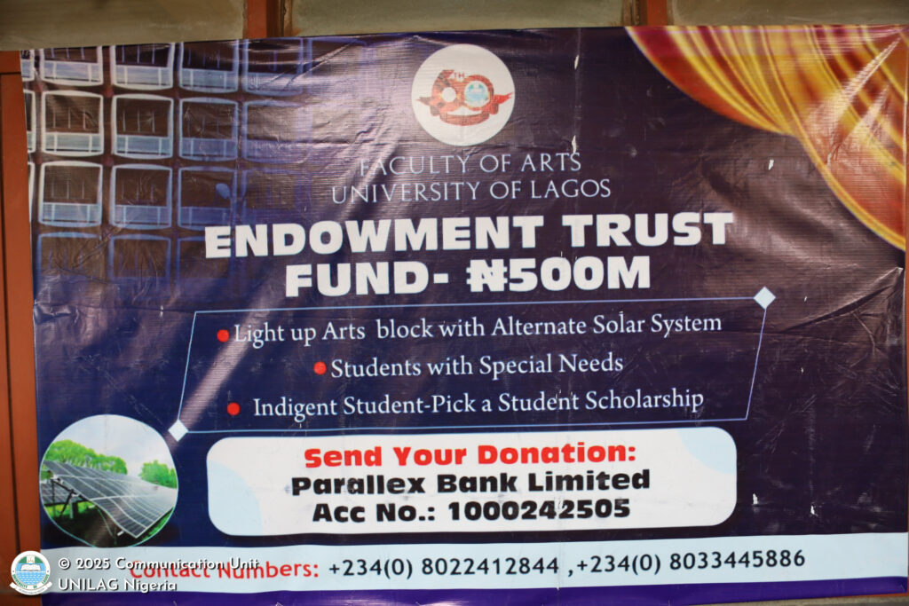 Chaired by a former Deputy Vice-Chancellor (Management Services) of the University of Lagos, Professor Duro Oni, the event also featured the official launch of a ₦500 million Faculty of Arts Endowment Trust Fund, a strategic initiative to support teaching, research, and infrastructure development. The former Dean of Arts also commended the alumni association for the initiative they have taken for the development of their alma mater, affirming his readiness to afford them the leverage of his network for the realisation of their noble objectives.