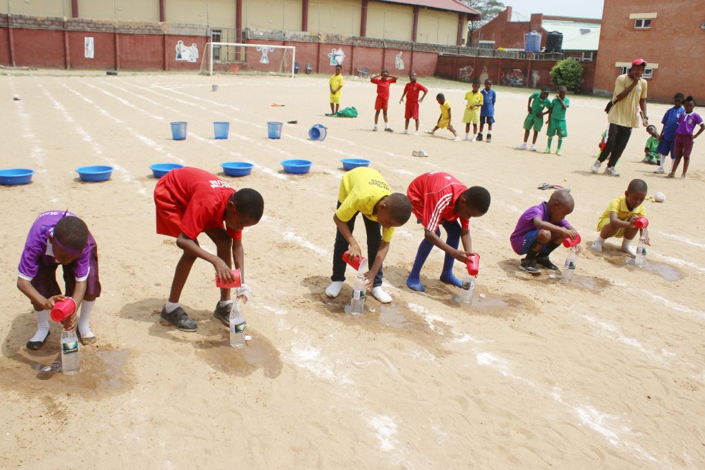 He encouraged the pupils to learn the values of fair play and participation above winning. He also donated five standing fans to the school.
