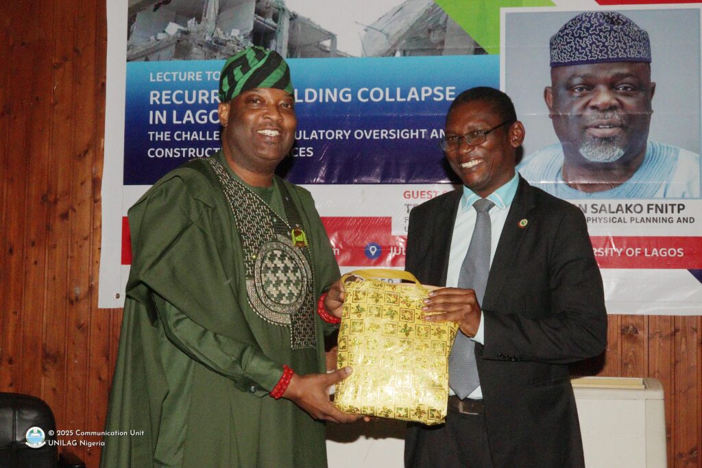 The two commissioners expressed deep reservations over the persistent issue of building collapse despite conferences, committees, panels and recommendations arising after each incident. The two commissioners applauded UNILAG for being at the forefront of discourse on the issue and harped on the need for all regulators and players in the building industry/built environment, to reexamine their roles and shun all forms of sharp practices.