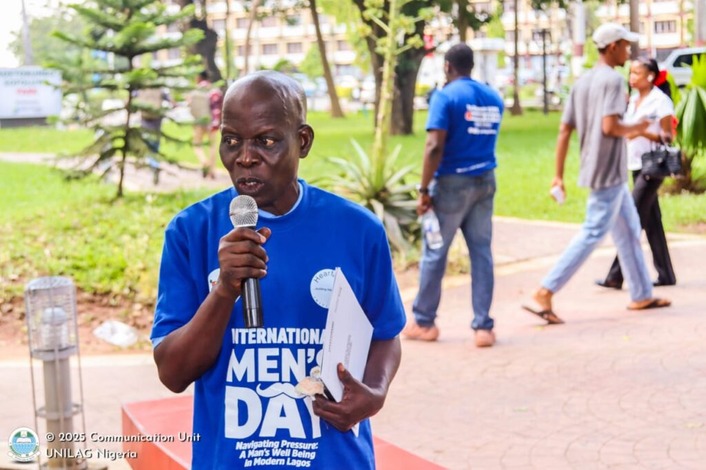 Following the walk, participants converged for a commemorative lecture delivered by Deputy Chief Medical Officer at the UNILAG Medical Centre, Dr. David Ikechukwu Ekwuaba. Speaking on the official theme for the 2025 celebration Navigating Pressure: A Man’s Well-Being in Modern Lagos, Dr. Ekwuaba highlighted the unique societal, psychological, and economic pressures confronting men today.