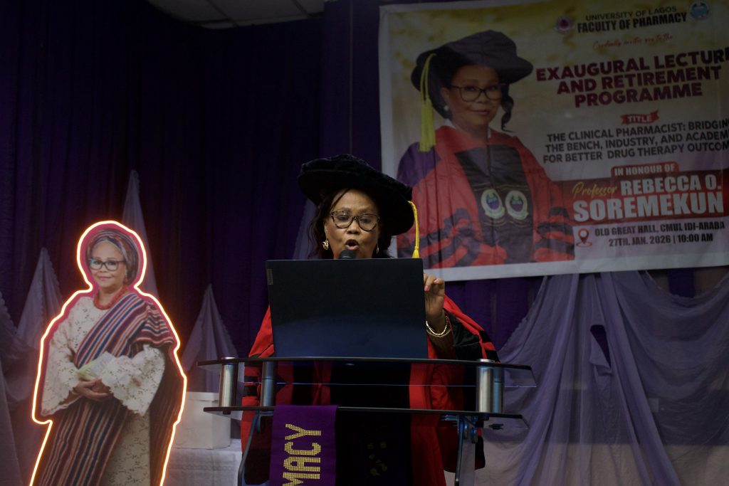 In her Exaugural Lecture titled, “The Clinical Pharmacist: Bridging Bench, Industry, and Academia for Better Drug Therapy Outcomes”, Professor Soremekun synthesised her extensive career in pharmaceutical education and underscored the critical role of clinical pharmacy in improving drug production and therapy outcomes in Nigeria.