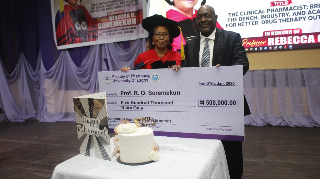 The Old Great Hall at the College of Medicine, University of Lagos (CMUL), Idi-Araba lit up on Tuesday, January 27, 2026, as the Faculty of Pharmacy, UNILAG honoured Professor Rebecca Oritsemaje Soremekun with a Retirement Ceremony which featured an Exaugural Lecture by the honouree.
