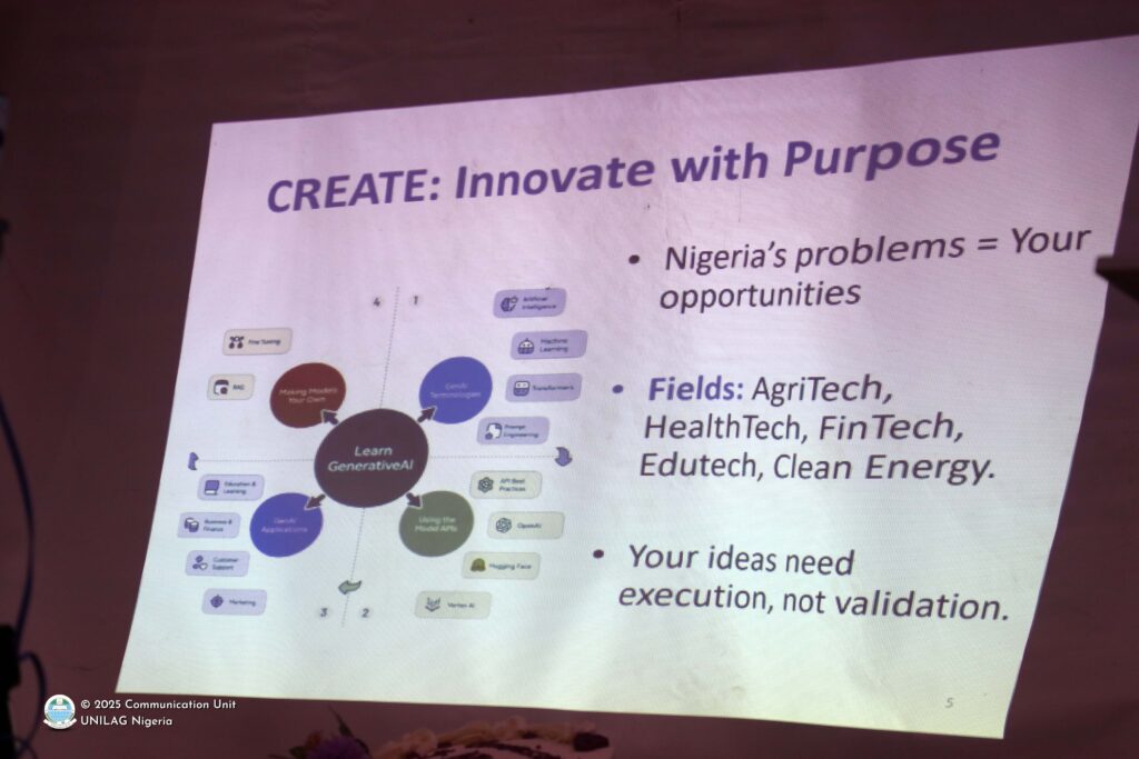 “Only 5% of Nigerian engineers are women. That must change,” he declared. “As innovators, don’t be afraid to put yourself forward. Your knowledge is an asset – monetise it!”