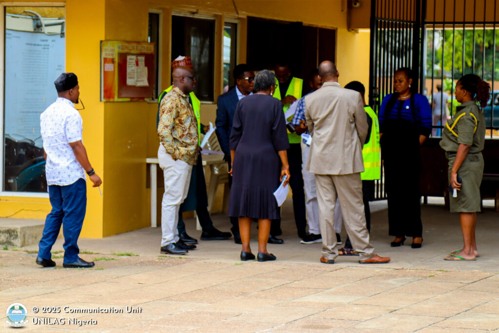 The business of the day kicked off at the Vice-Chancellor’s Conference Room (10th Floor, UNILAG Senate House) where members of the University Management including the Deputy Vice-Chancellor, Academics and Research, Professor Bola Oboh; Deputy Vice-Chancellor, Development Services, Professor Foluso Afolabi-Lesi; Deputy Vice-Chancellor, Management Services, Professor Muyiwa Falaiye and the University Registrar, Mrs. Victoria Wickliffe were all on ground to receive the National Assembly delegation and brief them on the task at hand. They were also joined by Architect Olaide Oladokun and Engineer Olaniyi Ayeye, of the University’s Works and Physical Planning Department.