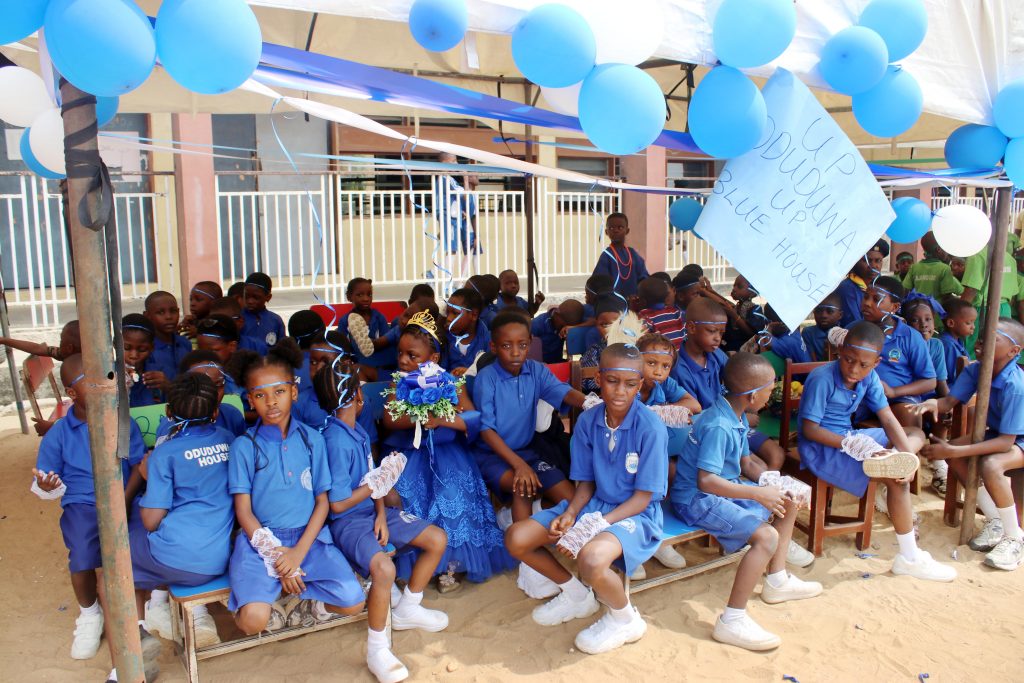 Five houses: Oduduwa (Blue), Danfodio (Yellow), Obi (Purple), Emotan (Red), and Jaja (Green), competed in sprints, novelty races, ball-picking contests, and the crowd-favourite: elephant race.